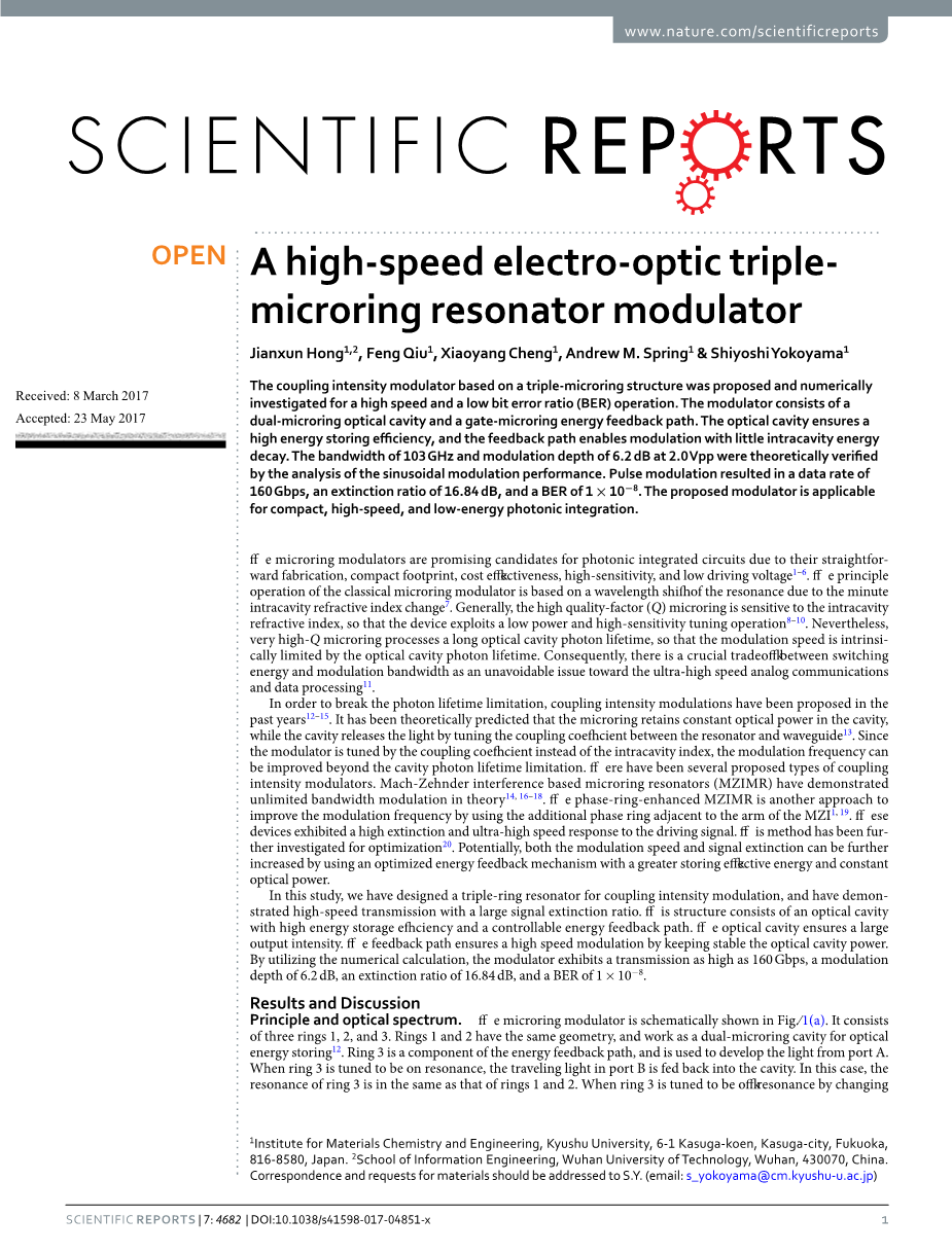 Jianxun Hong1,2 ,Feng Qiu1,Xiaoyang Cheng1,Andrew M.Spring1amp;Shiyoshi Yokoyama1