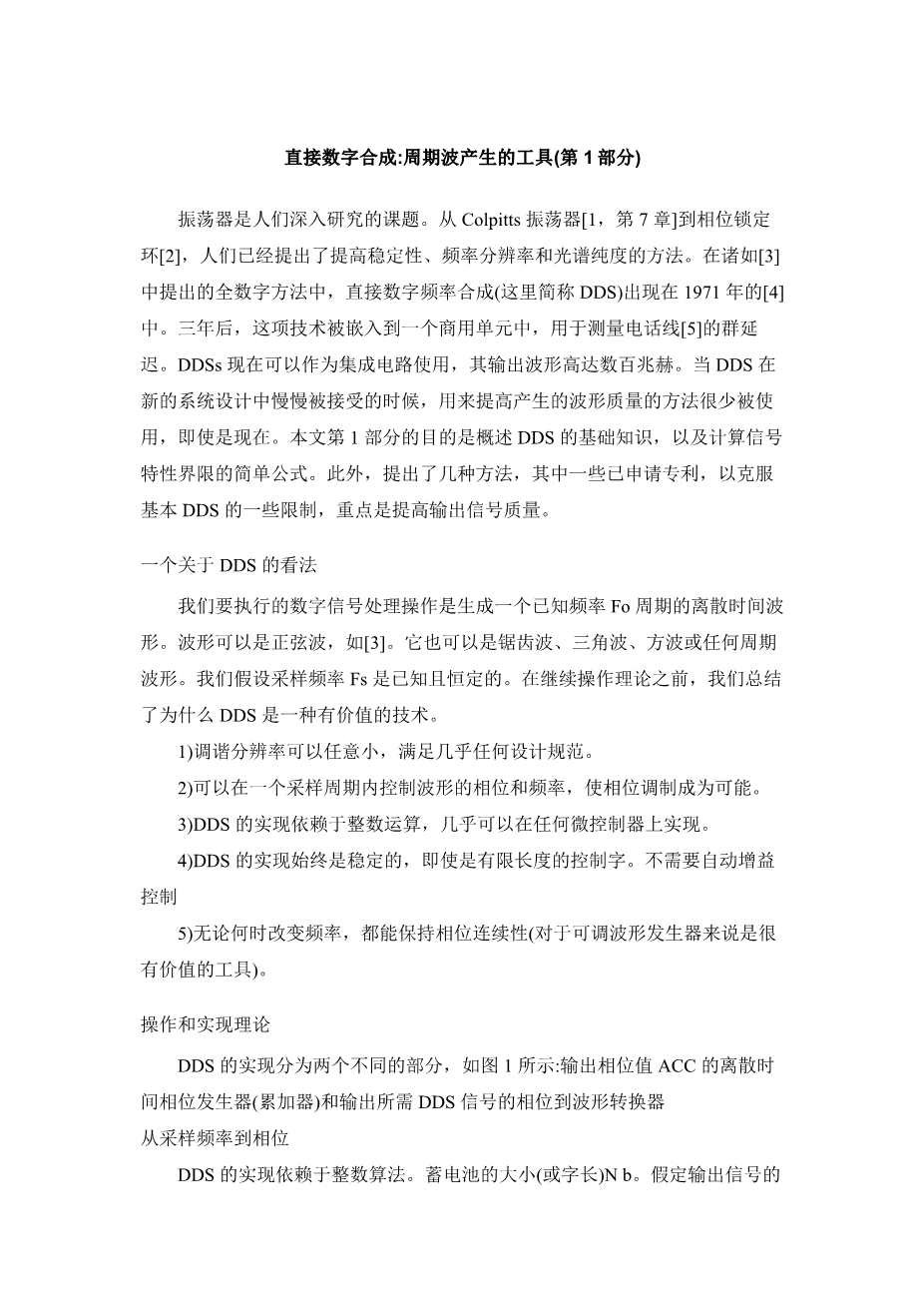 直接数字合成:周期波产生的工具(第1部分)外文翻译资料 2022-08-10 16:47:20 英语原文共 9 页,剩余内容已隐藏,支付完成后下载完整资料 英语译文共 9 页,剩余内容已隐藏,支付完成后下载完整资料 资料编号:[238223],资料为PDF文档或Word文档,PDF文档可免费转换为Word 原文和译文剩余内容已隐藏,您需要先支付 30元 才能查看原文和译文全部内容!立即支付 发小红书推广免费获取该资料资格。点击链接进入获取推广文案即可: Ai一键组稿 | 降AI率 | 降重复率 | 论文一键排版 PREVIOUS NEXT 您可能感兴趣的文章 基于BP神经网络的多气体检测传感器的研究外文翻译资料 微型机械压力/流量传感器外文翻译资料 基于LMS算法的自适应组合滤波器外文翻译资料 基于单一3D时空特性的行为识别描述外文翻译资料 SDSP:一种结合简单先验的新型显著性检测方法外文翻译资料 高吸收GaAs/AlGaAs量子阱红外光电探测器外文翻译资料 石墨烯纳米条带的制备和表征外文翻译资料 基于STM32的MIDI音乐发声器外文翻译资料 基于MEMS传感器的低功耗蓝牙智能3D定位装置外文翻译资料 基于数字信号调制的直接数字合成函数发生器外文翻译资料