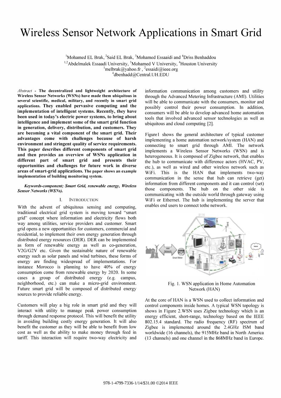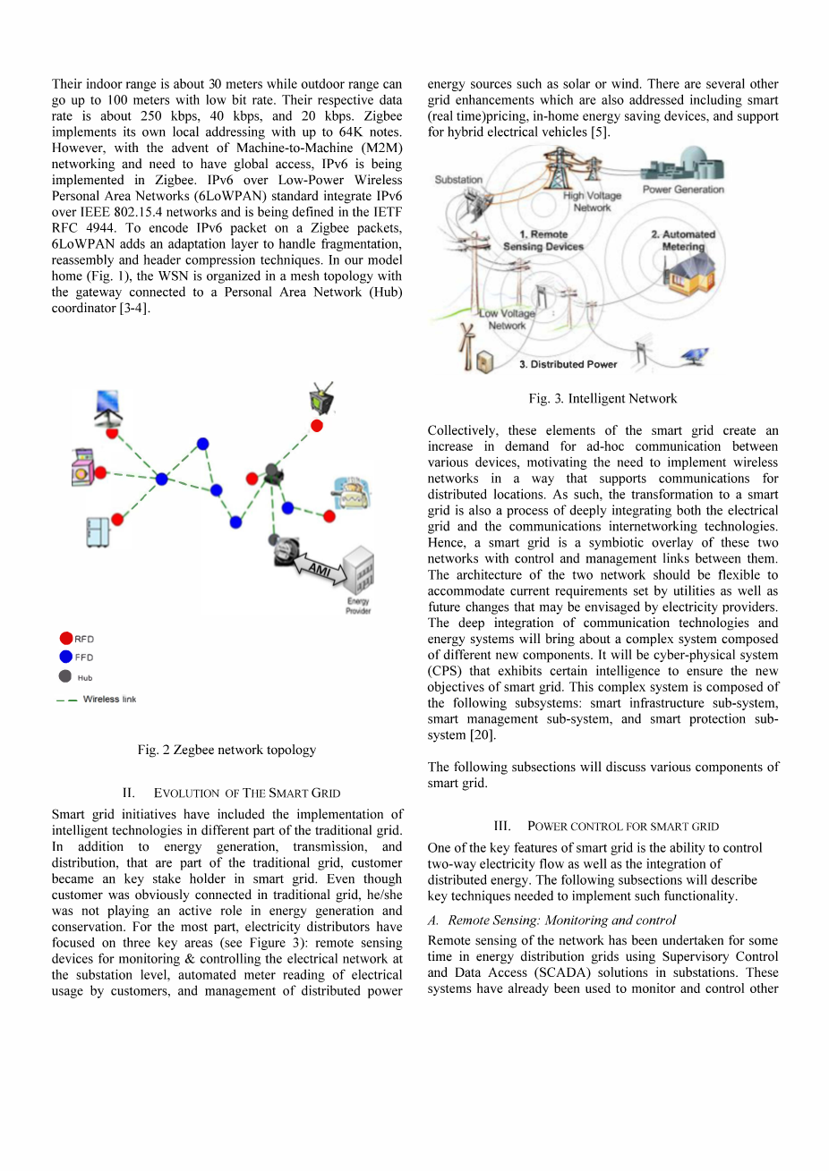 近年来,无线传感器网络提供了一个低成本的解决方案,电力系统的无线高级量测体系(WAMI)。WAMI系统提供了几个优点包括降低抄表工作的成本,通过消除人为读表,实时电价以客户的能源消耗为基础[7],以及通过先进远程监控的资产保护[8][9]。WAMI系统需要电力公司和客户之间可靠的双向通信。无线传感器网络技术通过提供低成本、低功耗的无线通信技术,有效地解决了这一需求。