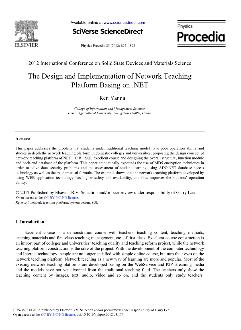 精品课程是拥有一流班级中的教师,教学内容,教学方法,教材,一流教学管理等的示范课程。精品课程建设项目是高校教学质量与教学改革工程的重要部分,而网络教学平台建设是该项目的核心。随着计算机技术和互联网技术的发展,人们已经不再满足于简单的在线课程,而是把目光转向网络教学平台。网络教学作为一种新的学习方式也越来越受欢迎。大部分现有的网络教学平台是基于WebService的和P2P流媒体开发的,其模式还未从传统的教学领域脱离出来。教师只通过图片,文字,音频,视频等来展示教学内容,学生就只研究教师“课件”。在课后环节的验收不能得到保证,学生学到了多少知识也不能在短期内进行检查。这意味着,实际上学生学习和教师教学之间存在脱节。