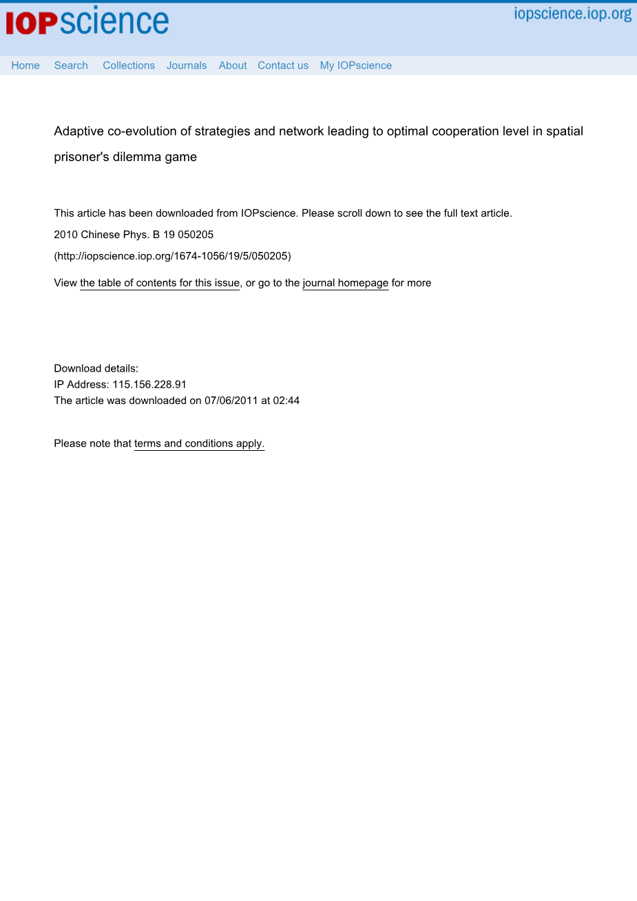 自适应进化的策略和网络导致空间的最优的合作水平的囚徒困境博弈