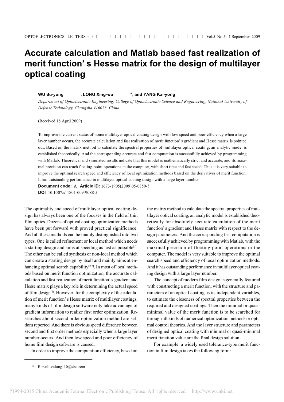 基于价值函数的黑塞矩阵快速实现光学多层膜设计的精确计算和Matlab仿真外文翻译资料