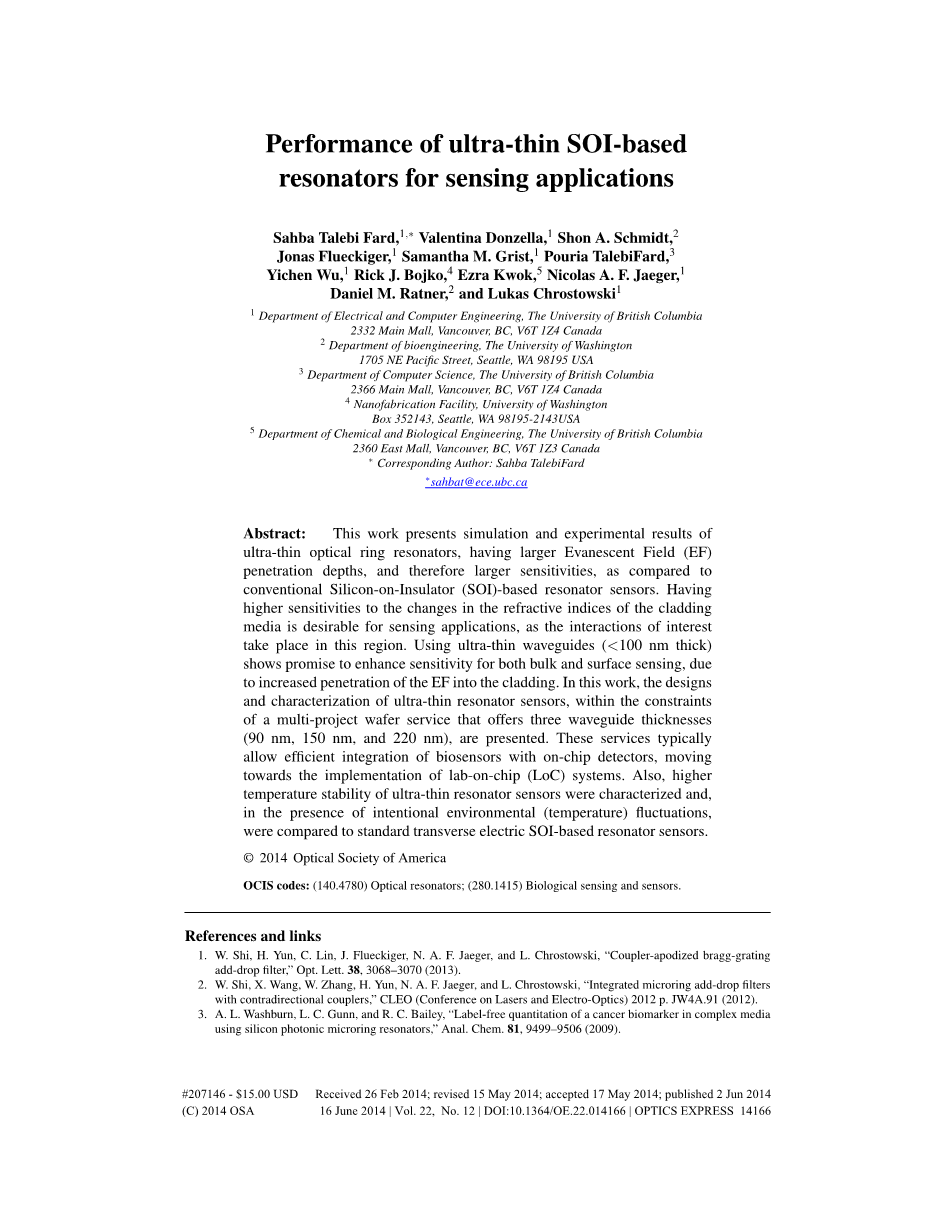 Yichen Wu,1 Rick J. Bojko,4 Ezra Kwok,5 Nicolas A. F. Jaeger,1 Daniel M. Ratner,2 and Lukas Chrostowski1