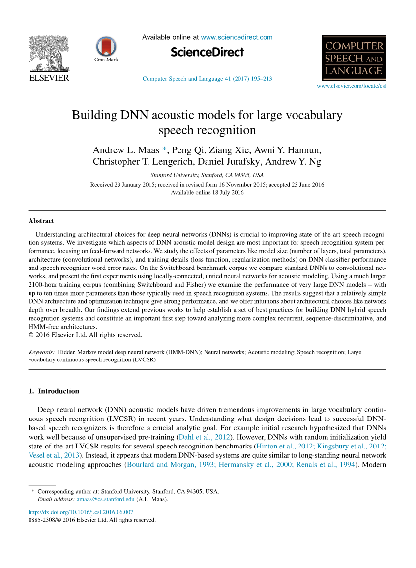 在本文中,我们对两个LVCSR任务的DNN性能进行了大量的实证研究,试图建立一套构建DNN声学模型的最佳实践。为了进一步仔细比较,我们将重点放在用交叉熵训练的前馈DNN模型上,因为它们是神经网络声学模型的基础。对这些前馈dnn的深入理解有助于指导利用基于递归神经网络的各种新体系结构的新兴工作(Graves等人,2013,李,吴,2015年,葡激酶等人2014年,Vinyals等人,2012,Weng等,2014),序列判别训练(Kingsbury等,2012,Vesel等,2013,Wiesler等,2015),以及无HMM神经网络方法(Graves,Jaitly,2014,Maas等,2015))。此外,我们试图了解DNN培训的哪些方面对下游任务绩效的影响最大。这些知识可以指导新的语音语料库,语言,计算约束和语言理解任务变体的DNN声学模型的快速开发。