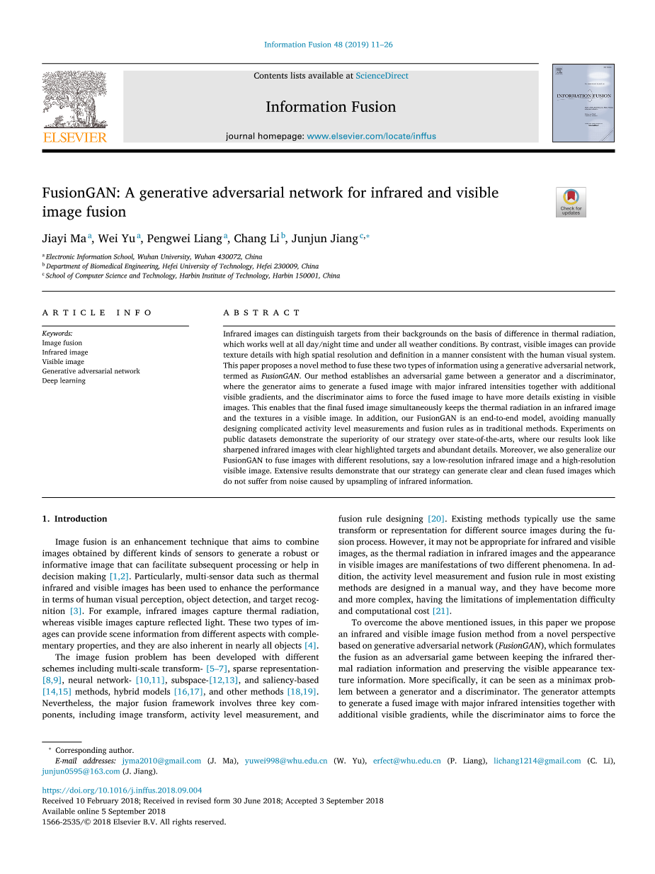 FusionGAN:用于红外和可见图像融合的生成对抗网络