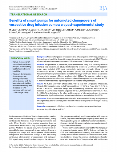 结论:这些结果表明,使用智能泵的自动切换在限制与接力相关的血液流速异常事故的频率和减少护理工作量方面具有优势。