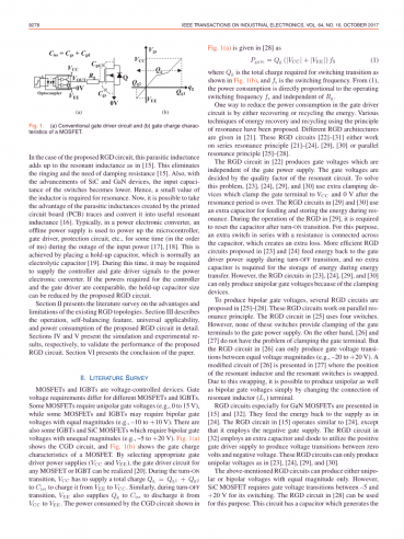 其中Qg是切换转换所需的总电荷,如图所示,fs是开关频率。耗与工作开关频率fs成正比,与Rg无关。降低栅极驱动器电路中的功耗的一种方法是通过恢复或再循环能量。已经提出了使用共振原理的各种能量回收和再循环技术。给出了不同的RGD架构。这些RGD电路或者采用串联谐振原理或并联。