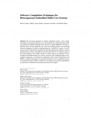摘要:随着现代嵌入式系统对高性能和高能效的要求越来越高,促使多处理器片上系统(MPSoCs)采用异构多核平台。为充分利用这些平台的功能,需要新的工具来解决日益增加的软件复杂化问题,以实现高生产率。MPSoC编译器是一个工具链,能够解决应用建模、平台描述、软件并行化、软件分配和代码迭代等问题,从而有效地使用目标平台。本文以成熟的单核C编译器技术为比较基准,详细阐述了编译过程的重要组成部分。最后,从学术界和工业界的一些案例研究来说明本文讨论的概念。