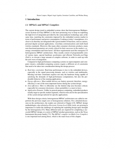本章其余部分的组织如下。第1.2节简要介绍了构建MPSOC编译器的挑战,将MPSOC编译器与单核编译器进行比较,然后在第2节中进行详细讨论。最后,第3节将介绍来自学术界和业界的MPSOC编译器的案例研究,探讨如何应对这些挑战。