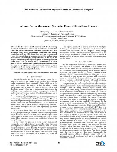 [3]Zhuang Zhao, Won Cheol Lee, Yoan Shin, and Kyung-Bin Song, “An Optimal Power Scheduling Method Applied in Home Energy Management System Based on Demand Response, ” ETRI Journal, Vol. 35, No. 4, pp. 677-686, Aug. 2013.