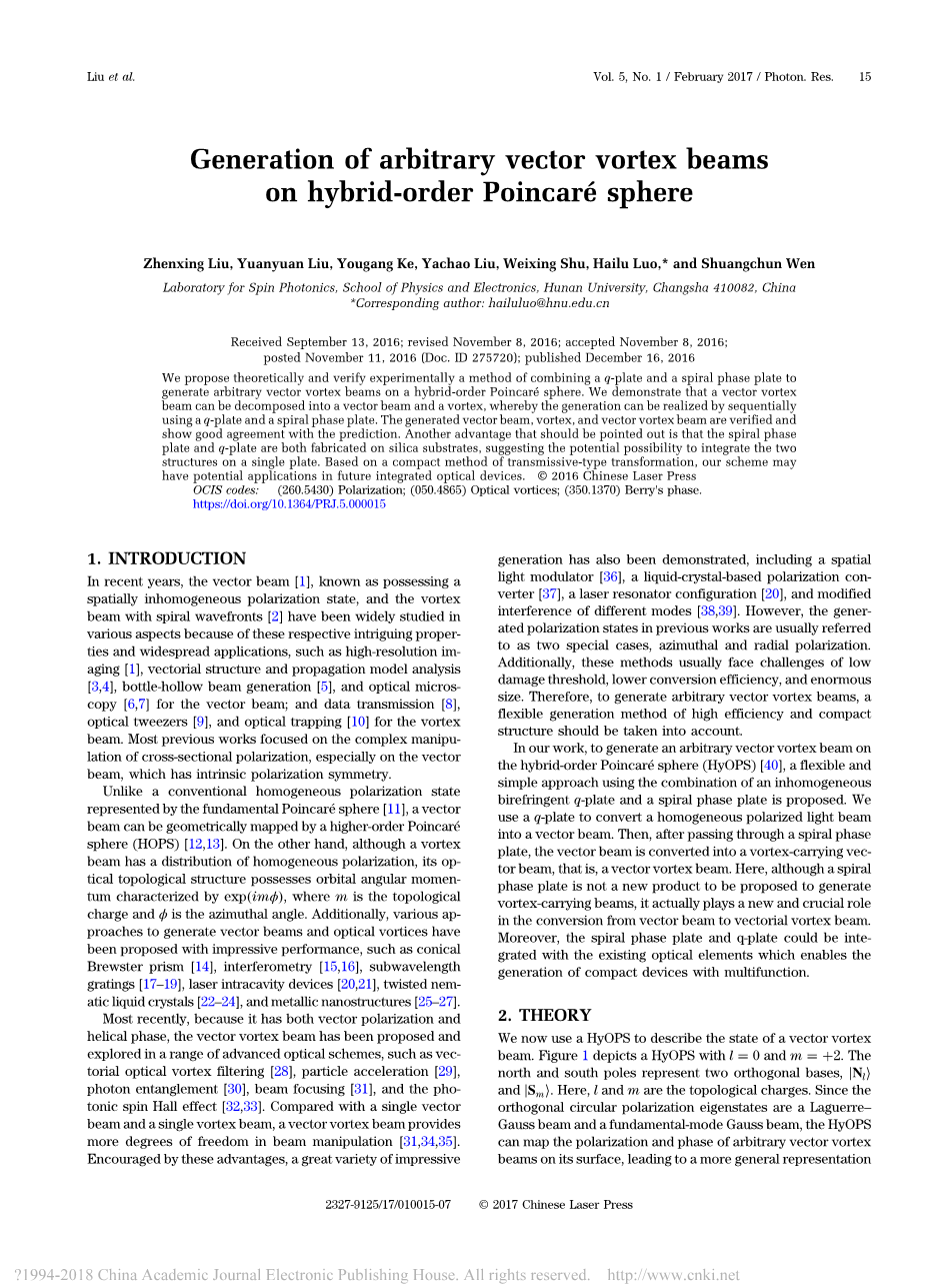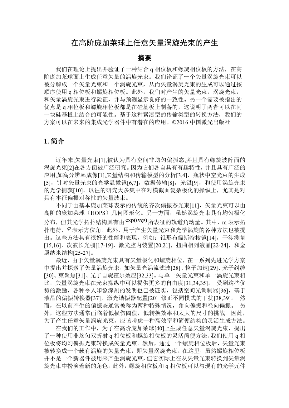 高阶庞加莱球上的矢量涡旋光束的远场结构特性外文翻译资料