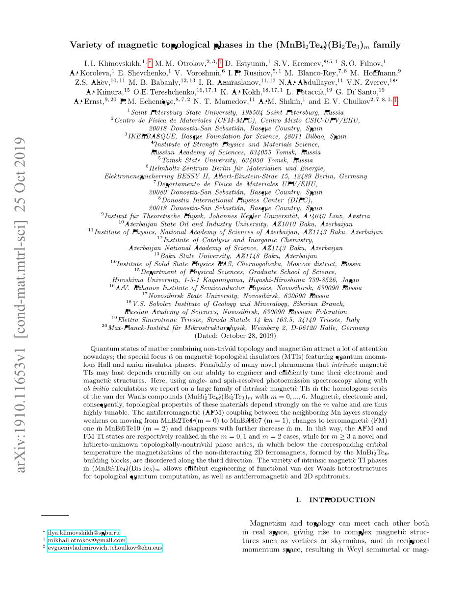 - Ernst,9,20 P.M. Echenique,8,7,2 N. T. Mamedov,11 A.M. Shikin,1 and E.V. Chulkov2,7,8,1, Dagger;