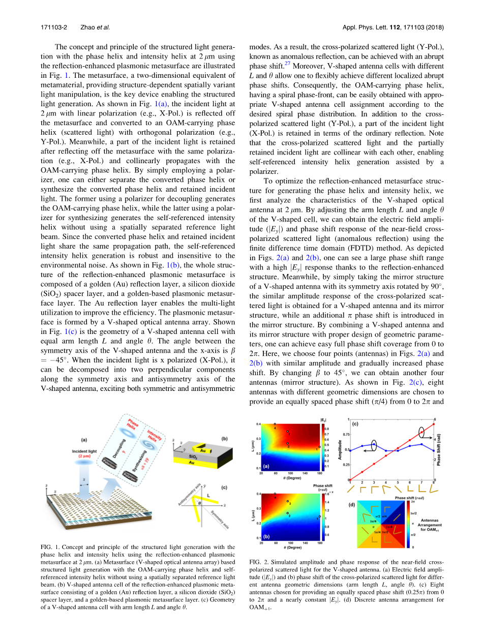在这种情况下,寻找一种有效的方法来产生从可见光和近红外延伸到中红外的相位螺旋和自干涉强度螺旋是值得研究的。在这里,我们设计并制备了一种片上反射增强型超表面结构,并利用该器件在2mu;m波段产生了螺旋相位的OAM模式和自干涉效应下的螺旋强度模式。本文中,2mu;m结构光产生是通过反射增强的等离子体超表面实现的。强度螺旋是由超表面的自干涉效应产生的。