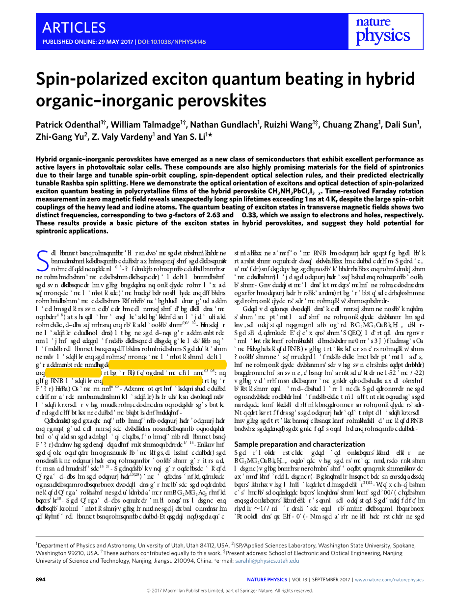Patrick Odenthal , William Talmadge , Nathan Gundlach , Ruizhi Wang , Chuang Zhang , Dali Sun , Zhi-Gang Yu , Z. Valy Vardeny and Yan S. Li