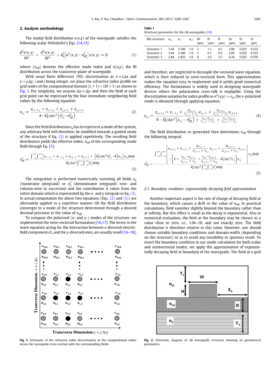 图1所示。折射率离散化在计算节点上的示意图,通过波导截面与相应的场。