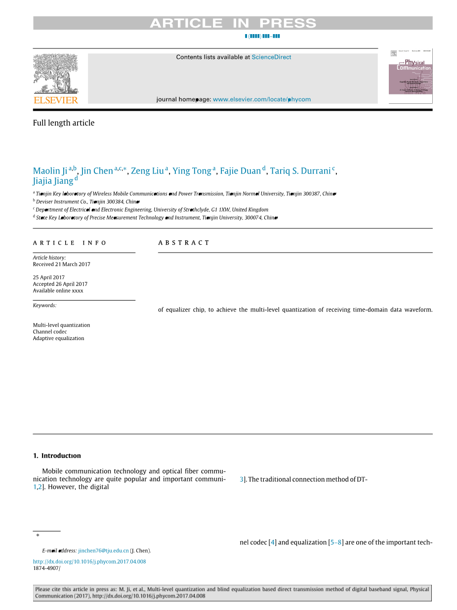 本文介绍了基于时域过采样,多级量化和软阈值自适应均衡的长距离数字基带信号传输系统。该方法通过高速模数转换器对通道端子处的信号波形进行过采样,实现