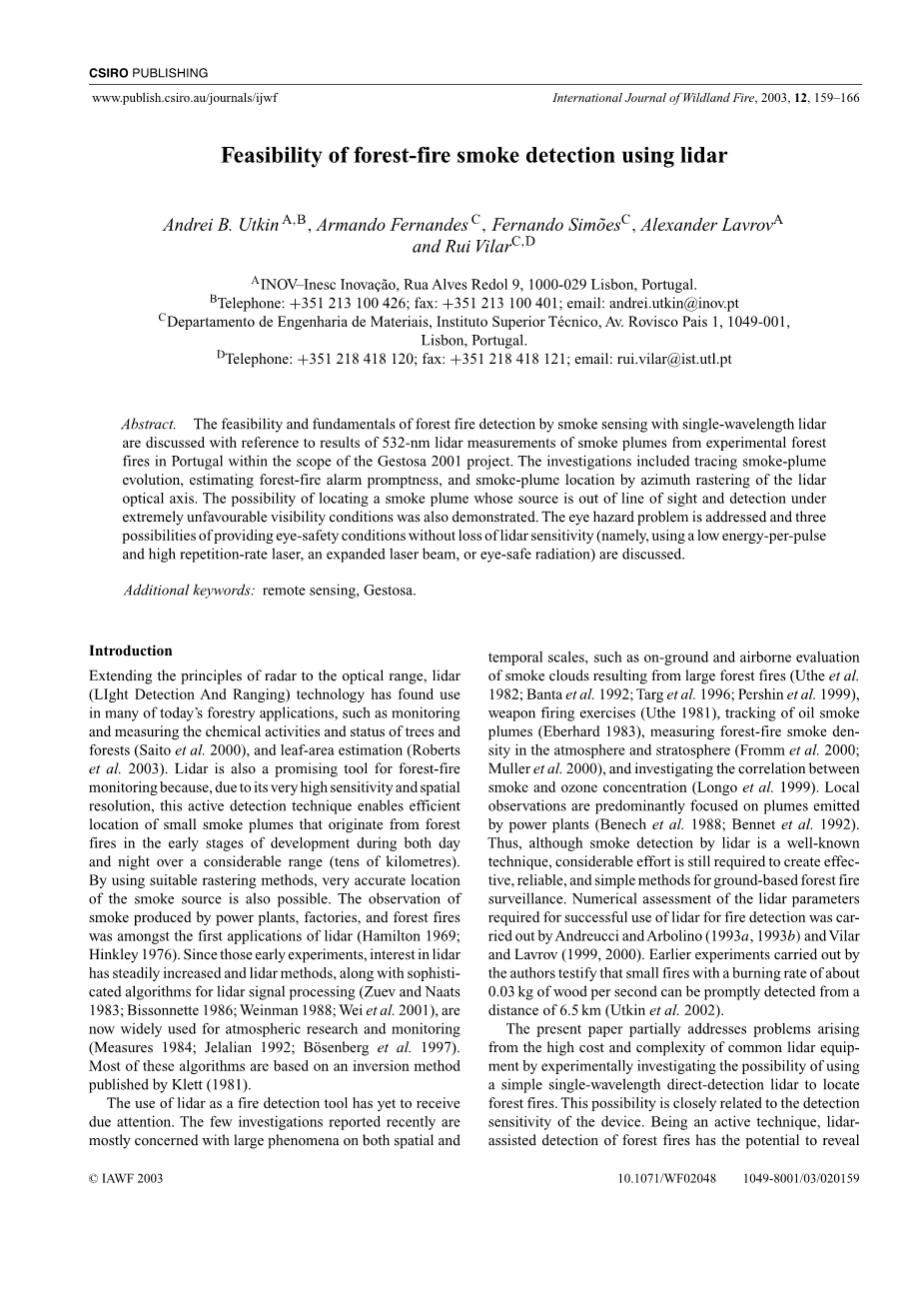 Andrei B. UtkinA,B, Armando FernandesC, Fernando Simotilde;esC, Alexander LavrovA