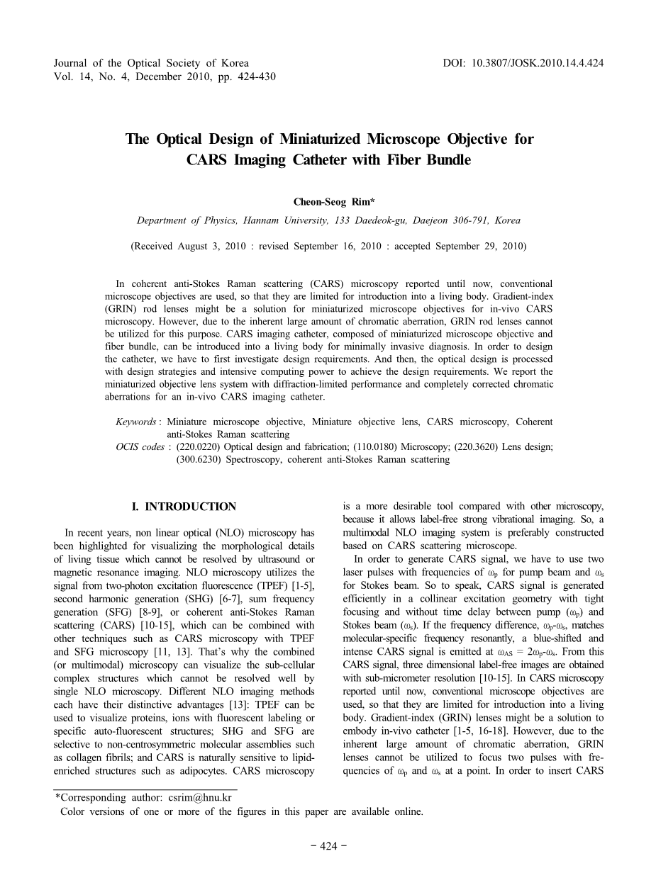 OCIS代码: (220.0220)光学设计与制造; (110.0180)显微镜; (220.3620)透镜设计; (300.6230)光谱学,相干反斯托克斯拉曼散射