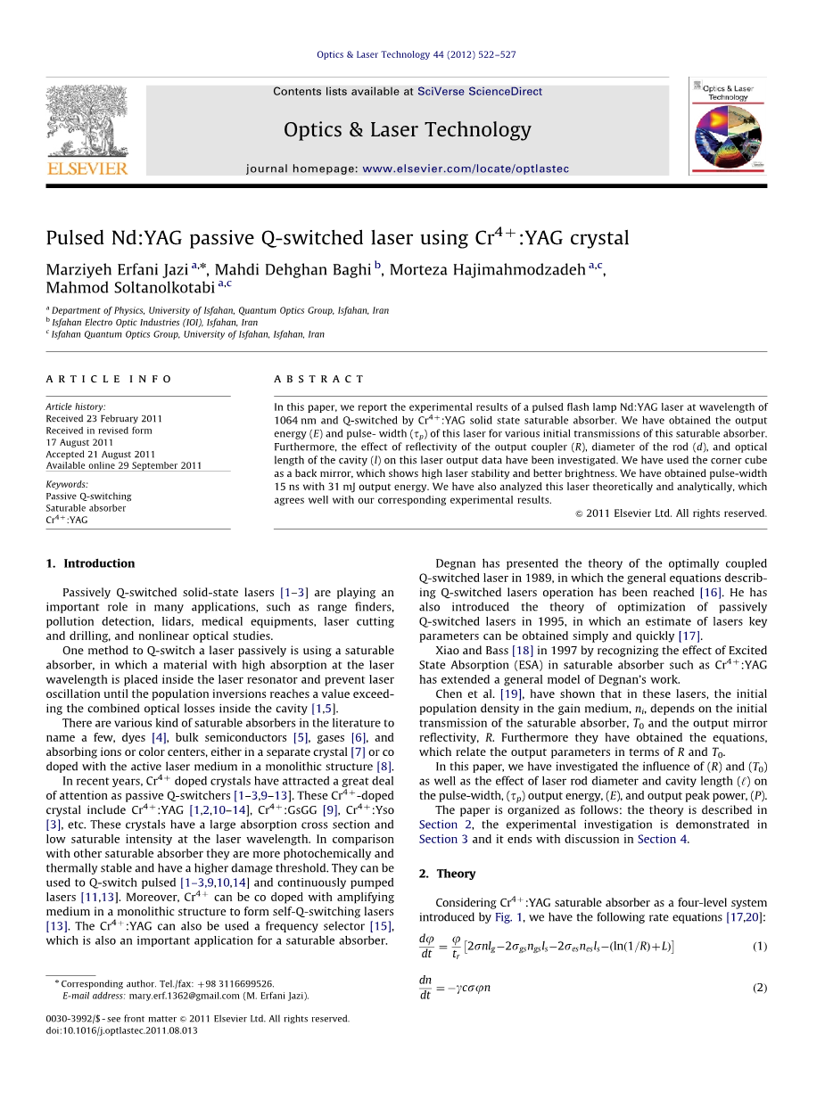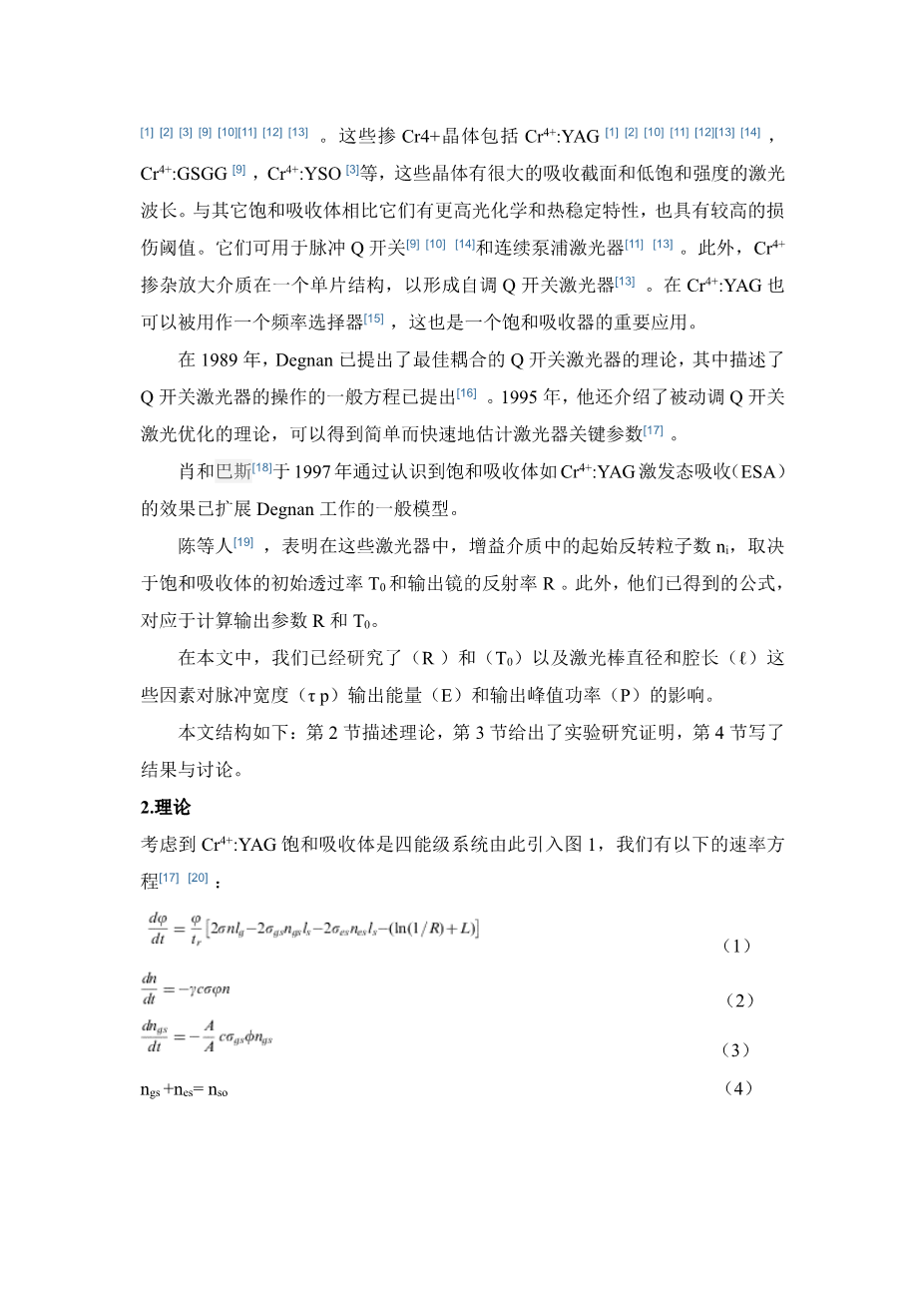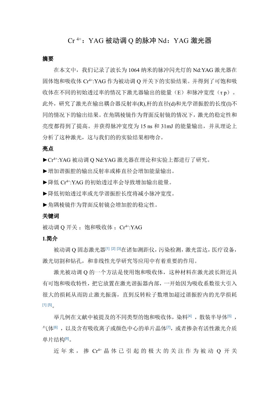 Cr 4 :YAG被动调Q的脉冲Nd: YAG激光器外文翻译资料 2023-02-19 20:38:49 英语原文共 18 页,剩余内容已隐藏,支付完成后下载完整资料 英语原文共 14 页,剩余内容已隐藏,支付完成后下载完整资料 资料编号:[147664],资料为PDF文档或Word文档,PDF文档可免费转换为Word 原文和译文剩余内容已隐藏,您需要先支付 30元 才能查看原文和译文全部内容!立即支付 发小红书推广免费获取该资料资格。点击链接进入获取推广文案即可: Ai一键组稿 | 降AI率 | 降重复率 | 论文一键排版 PREVIOUS NEXT 您可能感兴趣的文章 多腔金属-介质滤波器外文翻译资料 斜率效率59.80%的高效的Nd∶YAG陶瓷连续激光器外文翻译资料 溶胶-凝胶法制备高透明纳米结构TiO2薄膜外文翻译资料 喷射冷却金属簇的腔环染色激光光谱: Cu2和Cu3外文翻译资料 有机-无机卤化铅的合成钙钛矿纳米片:寻求高性能钙钛矿太阳能电池和光电子器件外文翻译资料 单位圆的正交多项式向量, 第二部分:完成基组外文翻译资料 LED显示器的设计与应用外文翻译资料 基于SURF的视频图像拼接技术研究外文翻译资料 广州市区相对湿度和粒径分布对气溶胶消光性的影响外文翻译资料 Cr 4 :YAG被动调Q的脉冲Nd: YAG激光器外文翻译资料