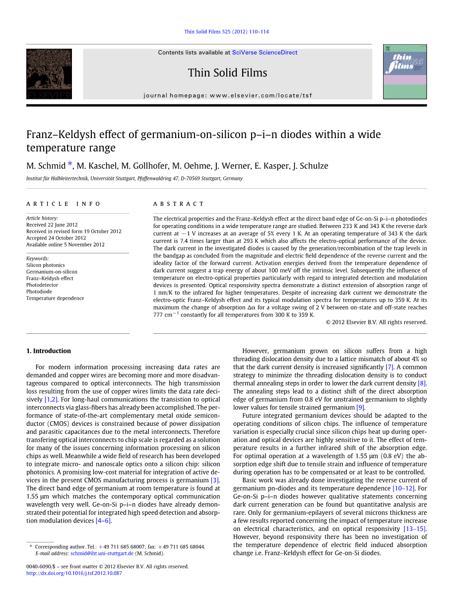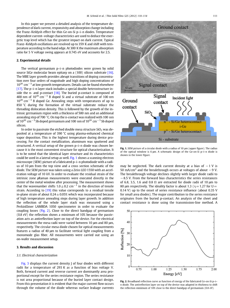 锗二极管的反向电流及其与温度的关系已经有了基本的研究,但是,对于硅基锗二极管来说,可以找到有关暗电流产生的定性描述,但很少进行定量分析。只有几微米厚度的锗表面膜,很少有关于温度升高对电特性和光响应率的影响的结果报道。而且,除了温度响应性,也没有研究电场诱导吸收变化的温度依赖性,即Franz-Keldysh效应。