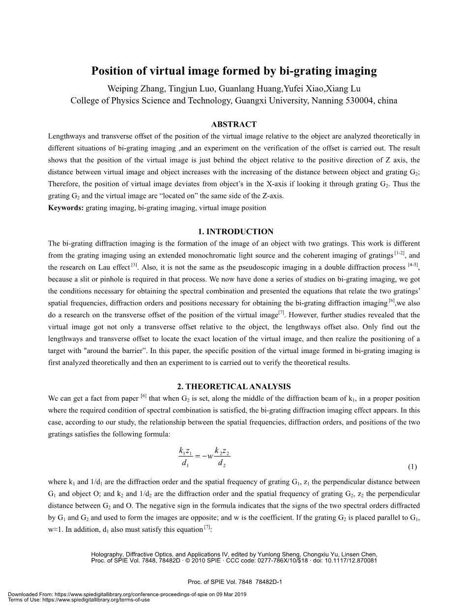 利用双光栅组观察全息相片白光再现像的研究外文翻译资料 2022-01-26 22:49:13 英语原文共 13 页,剩余内容已隐藏,支付完成后下载完整资料 英语原文共 13 页,剩余内容已隐藏,支付完成后下载完整资料资料编号:[407],资料为PDF文档或Word文档,PDF文档可免费转换为Word 原文和译文剩余内容已隐藏,您需要先支付 30元 才能查看原文和译文全部内容!立即支付 发小红书推广免费获取该资料资格。点击链接进入获取推广文案即可: Ai一键组稿 | 降AI率 | 降重复率 | 论文一键排版 PREVIOUS NEXT 您可能感兴趣的文章 多腔金属-介质滤波器外文翻译资料 斜率效率59.80%的高效的Nd∶YAG陶瓷连续激光器外文翻译资料 溶胶-凝胶法制备高透明纳米结构TiO2薄膜外文翻译资料 喷射冷却金属簇的腔环染色激光光谱: Cu2和Cu3外文翻译资料 有机-无机卤化铅的合成钙钛矿纳米片:寻求高性能钙钛矿太阳能电池和光电子器件外文翻译资料 单位圆的正交多项式向量, 第二部分:完成基组外文翻译资料 LED显示器的设计与应用外文翻译资料 基于SURF的视频图像拼接技术研究外文翻译资料 广州市区相对湿度和粒径分布对气溶胶消光性的影响外文翻译资料 Cr 4 :YAG被动调Q的脉冲Nd: YAG激光器外文翻译资料