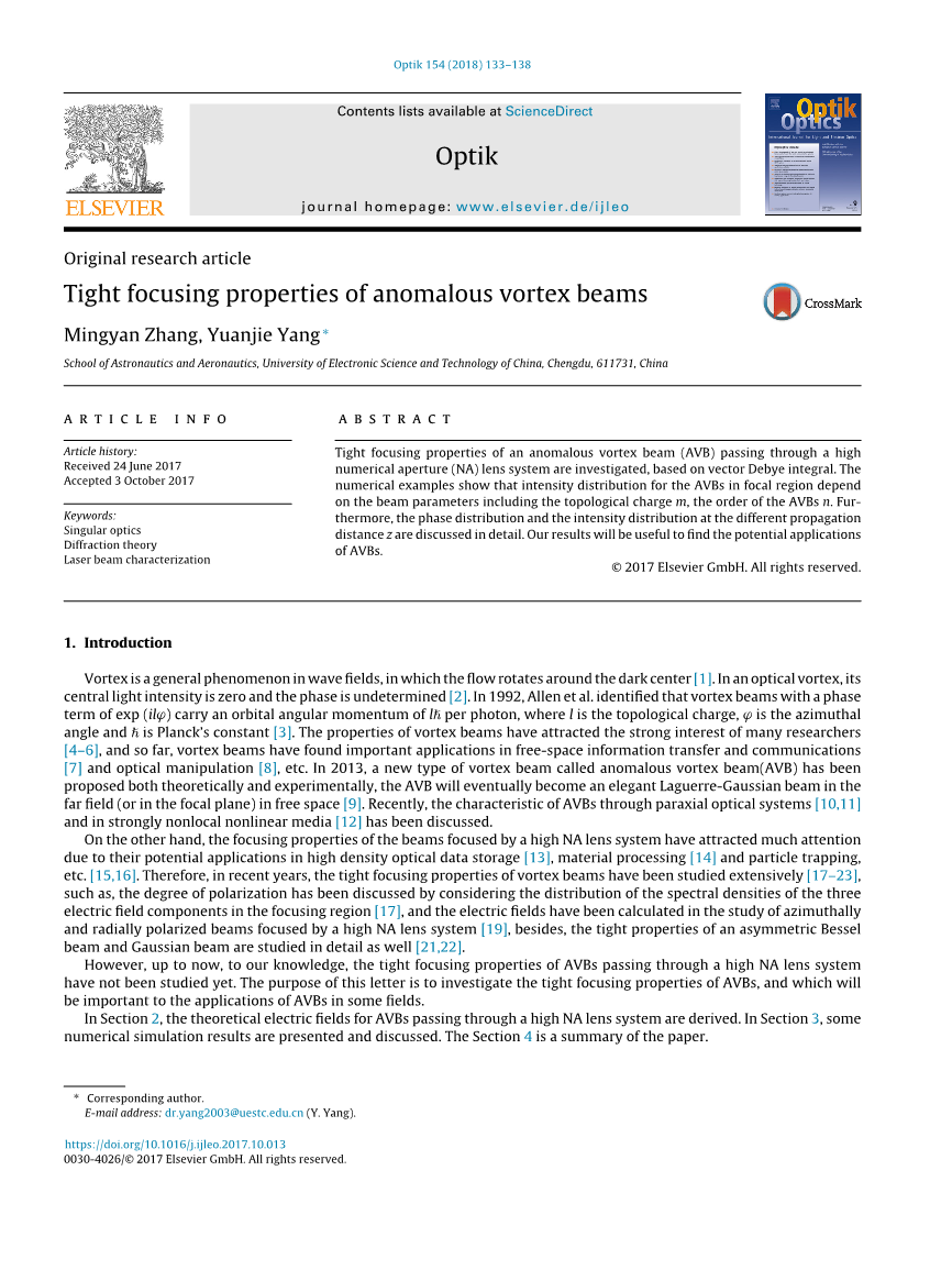 [10]Y. Xu, S. Wang.Characteristic study of anomalous vortex beam through a paraxial optical system Opt. Commun., 331 (2014), pp. 32-38.