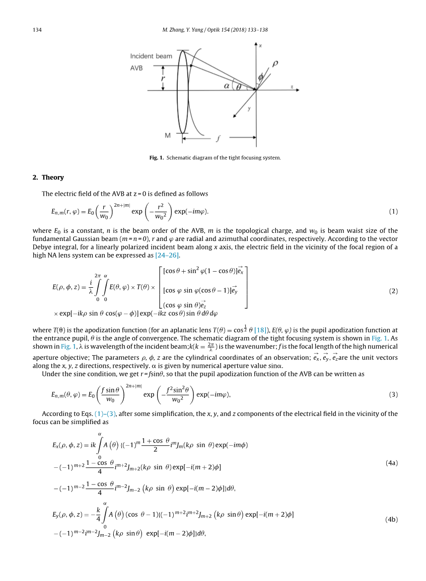 在第二章中,推导了avb通过高数值孔径透镜系统时理论电场的场分布。第三部分给出了一些数值模拟结果并进行了讨论。第四部分是论文的总结。
