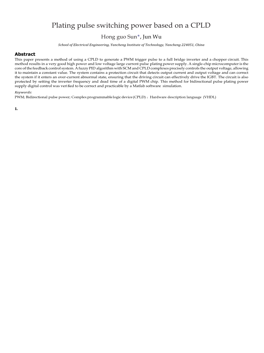 关键词:PWM;双向脉冲电源;复杂的可编程逻辑器件(CPLD);硬件描述语言(VHDL)