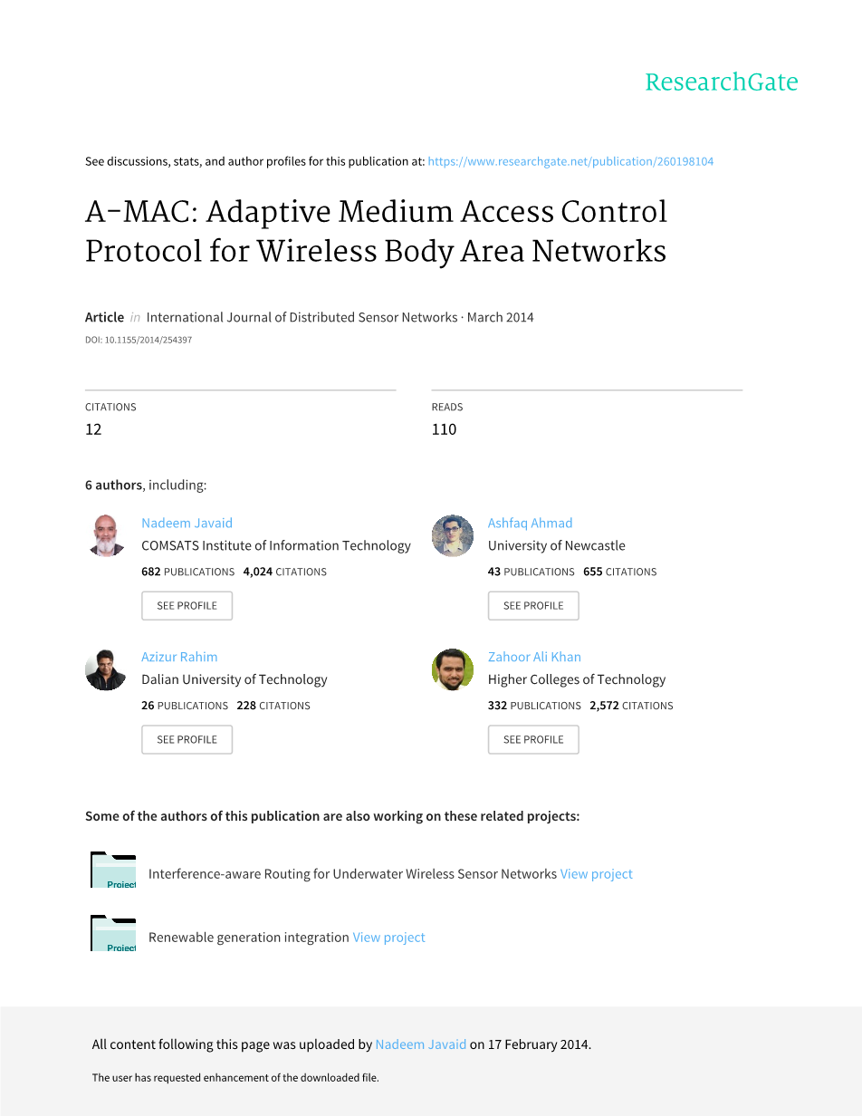 A-MAC:用于无线体域网的自适应介质访问控制协议