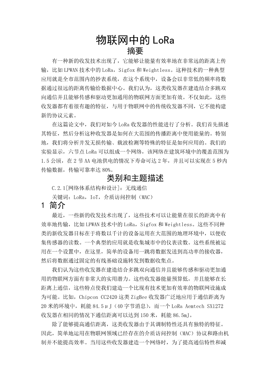 基于LoRa的智能建筑能耗管理系统分析与设计外文翻译资料 2022-04-19 18:22:09 英语原文共 7 页,剩余内容已隐藏,支付完成后下载完整资料 英语原文共 12 页,剩余内容已隐藏,支付完成后下载完整资料资料编号:[13564],资料为PDF文档或Word文档,PDF文档可免费转换为Word 原文和译文剩余内容已隐藏,您需要先支付 30元 才能查看原文和译文全部内容!立即支付 发小红书推广免费获取该资料资格。点击链接进入获取推广文案即可: Ai一键组稿 | 降AI率 | 降重复率 | 论文一键排版 PREVIOUS NEXT 您可能感兴趣的文章 看边界:边界感知面部对齐算外文翻译资料 看边界:边界感知面部对齐算外文翻译资料 一种支持分布式正态智能监控的多代理体系结构外文翻译资料 增强的无线局域网协作MAC外文翻译资料 近眼显示器的绝对辐射和光度测量外文翻译资料 红外遥控系统外文翻译资料 一幅单一图像中雨滴去除的专注生成对抗性网络外文翻译资料 深度残差学习在图像识别中的应用外文翻译资料 低成本,便携式室内环境质量监测装置的设计与开发外文翻译资料 使用基于查询蓝牙的RSSI概率分布进行室内定位外文翻译资料