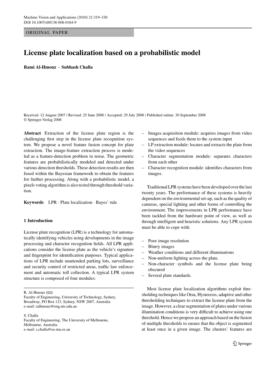 针对小区门禁的车牌定位方法研究外文翻译资料 2022-04-25 22:26:32 英语原文共 12 页,剩余内容已隐藏,支付完成后下载完整资料 英语译文共 17 页,剩余内容已隐藏,支付完成后下载完整资料资料编号:[465716],资料为PDF文档或Word文档,PDF文档可免费转换为Word 原文和译文剩余内容已隐藏,您需要先支付 30元 才能查看原文和译文全部内容!立即支付 发小红书推广免费获取该资料资格。点击链接进入获取推广文案即可: Ai一键组稿 | 降AI率 | 降重复率 | 论文一键排版 PREVIOUS NEXT 您可能感兴趣的文章 看边界:边界感知面部对齐算外文翻译资料 看边界:边界感知面部对齐算外文翻译资料 一种支持分布式正态智能监控的多代理体系结构外文翻译资料 增强的无线局域网协作MAC外文翻译资料 近眼显示器的绝对辐射和光度测量外文翻译资料 红外遥控系统外文翻译资料 一幅单一图像中雨滴去除的专注生成对抗性网络外文翻译资料 深度残差学习在图像识别中的应用外文翻译资料 低成本,便携式室内环境质量监测装置的设计与开发外文翻译资料 使用基于查询蓝牙的RSSI概率分布进行室内定位外文翻译资料