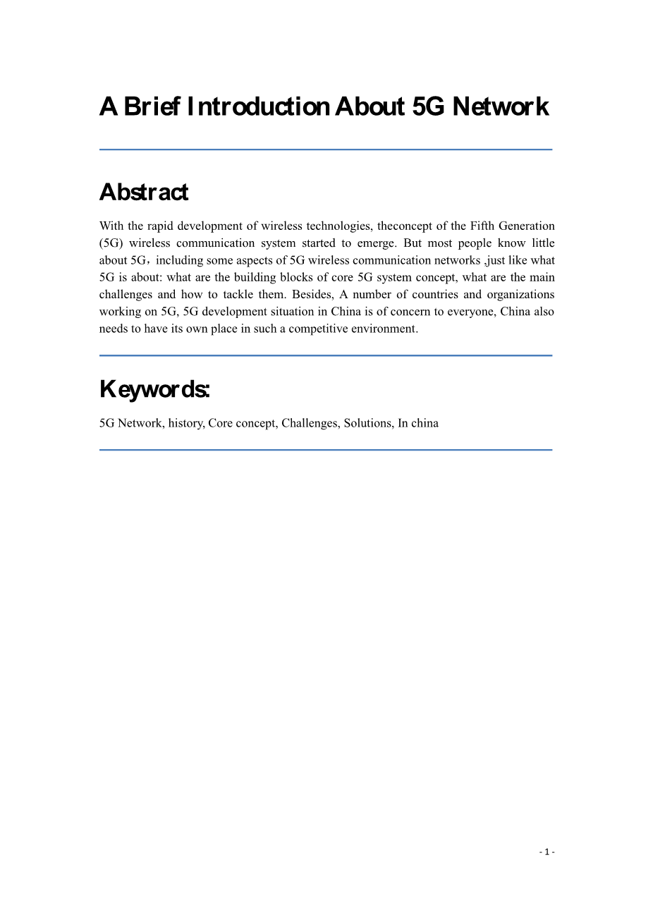 随着无线技术的快速发展,第五代(5G)无线通信系统的概念开始出现。 但大多数人对5G知之甚少,包括5G无线通信网络的某些方面,就像5G所说的那样:核心5G系统概念的构建块是什么,主要挑战是什么以及如何解决它们。 此外,从事中国5G,5G发展形势的一些国家和组织也受到大家的关注,中国也需要在这样的竞争环境中占有一席之地。