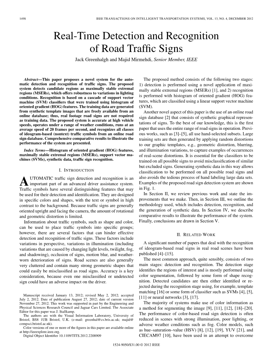 大量关于识别真实道路场景中基于象形文字的道路标志的论文已发表[4]-[5][6]