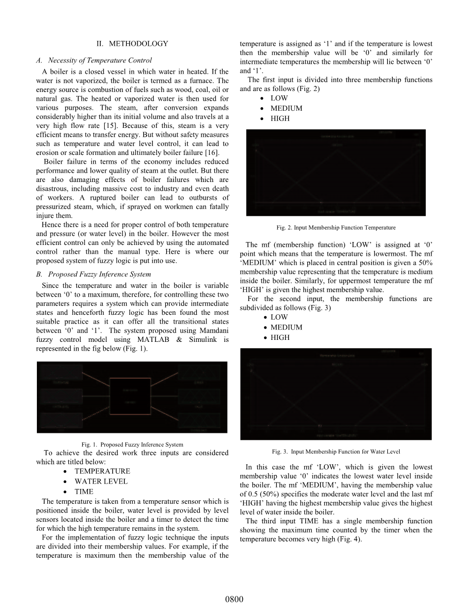 在我们提出的模糊逻辑控制系统中,温度,水位和时间是三个输入。 两个输出是阀门和燃烧器。 我们需要将水的温度和水位保持在一定的最佳范围,以确保防止锅炉故障。 温度和水位由连接到微控制器的传感器计算。