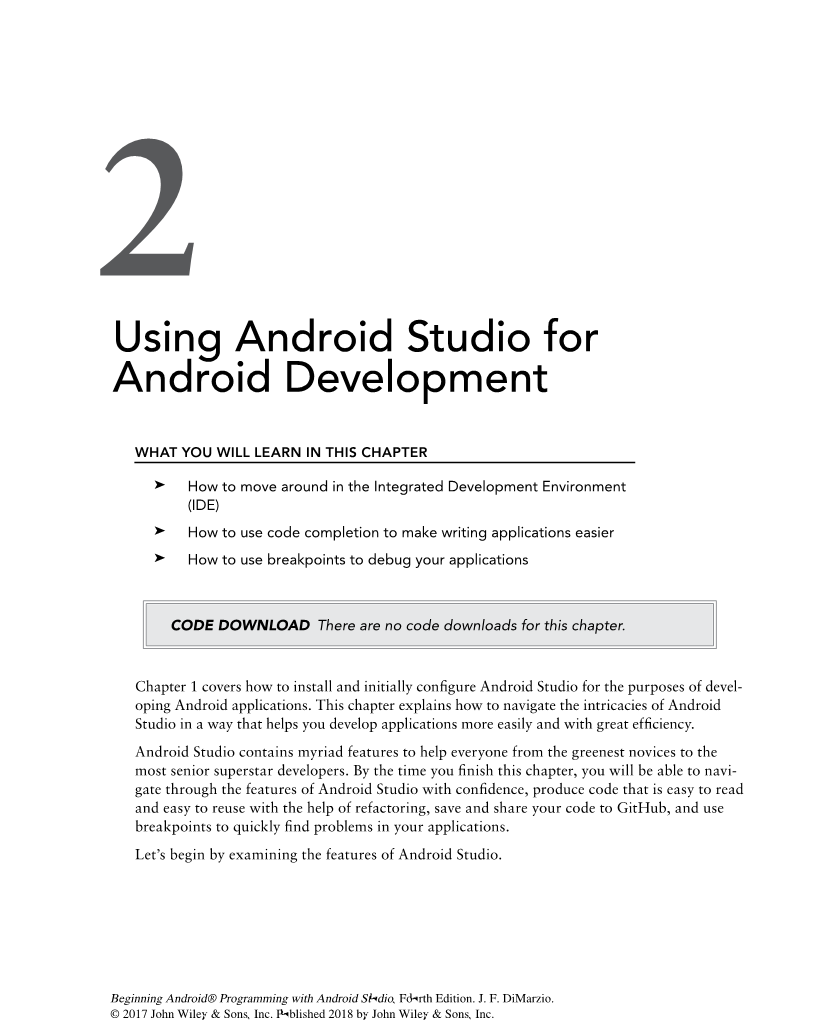 Android Studio包含了无数的功能来满足从新手到老练的超级开发者的需求。当你学完本章内容后,你将能自信的在Android Studio的功能间导航,使用重构功能编写出易于阅读且易于重用的代码,使用GitHub保存和分享代码,并且利用断点快速找到应用中的问题。