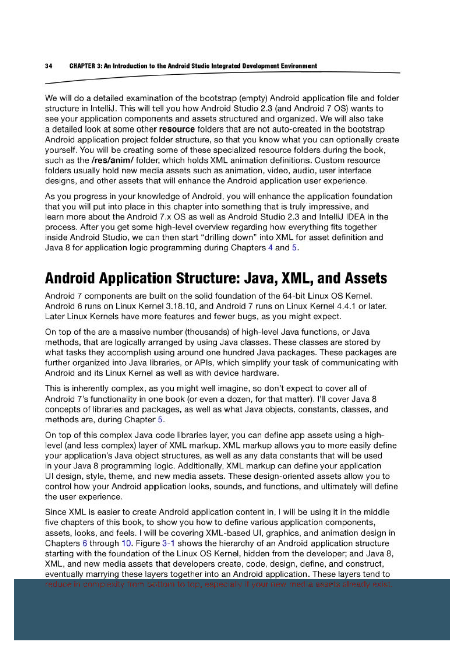 由于XML更易于创建Android应用程序的内容,因此我将在本书的中间五章中向您展示如何定义各种应用程序组件,资源,外观和感觉。 我将在第6章至第10章介绍基于XML的UI,图形和动画设计。图3-1显示了开发人员从隐藏的Linux OS内核基础开始的Android应用程序结构的层次结构; 以及开发人员创建,编码,设计,定义和构建的Java 8,XML和新媒体资源,最终将这些层一起结合到Android应用程序中。 这些图层从下到上复杂性往往会降低,尤其是在您的新媒体资源已经存在的情况下。