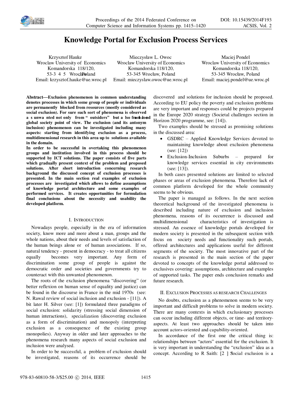 本文的安排如下,在下一节中,调查包容和排斥现象的理论背景找出现象的实质,讨论它的产生原因,着重调查它的多维特征。开发知识门户对现代社会的实质意义是呈现在后续部分专注于社会需求和功能这样的门户网站,为不同社会阶层提供不同的体系结构构和应用。这项研究最具有创新精神的部分被呈现在论文的主章节,致力于独家涵盖知识门户网站的概念:假设、体系结构和支持多任务的例子。本篇论文的末尾言论展现了对未来的研究展望。
