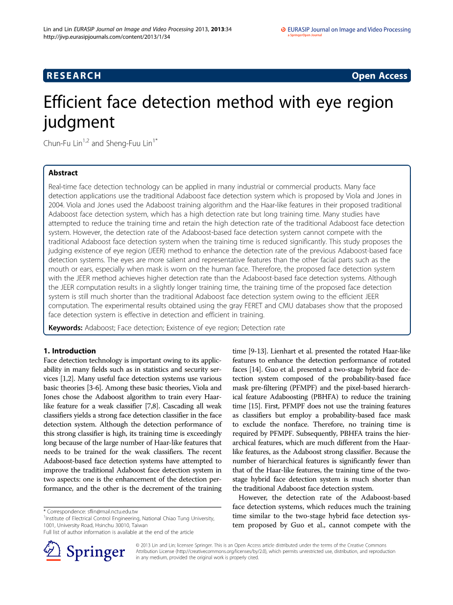 (Chun-Fu Lin,Sheng-Fuu Lin. Efficient face detection method with eye region judgment [J]. EURASIP Journal on Image and Video Processing, 2013, Vol.2013 (1):1-14.)