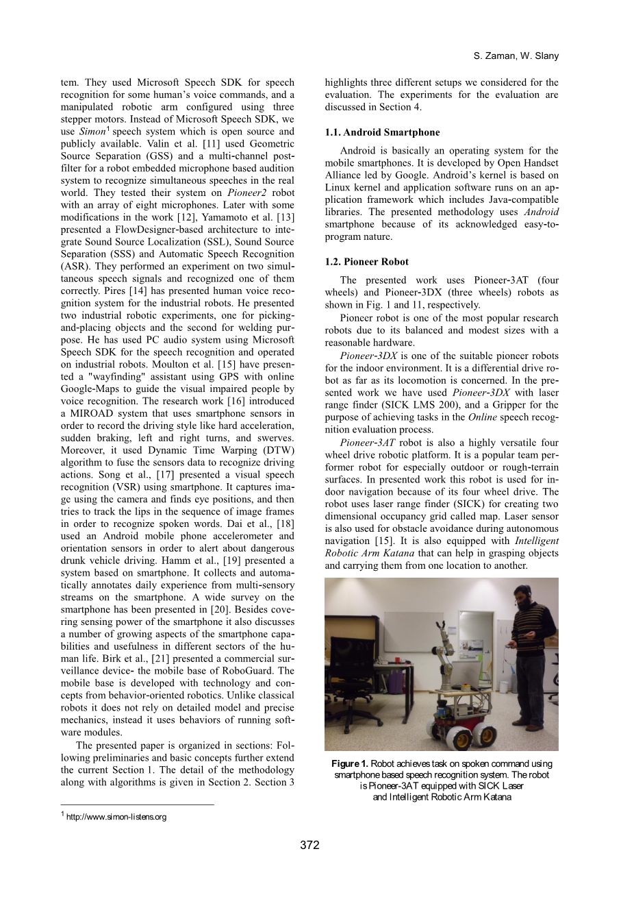 图1 机器人使用基于智能手机的语音识别系统实现语音任务,Pionner-3AT机器人装备有激光传感器和机械臂