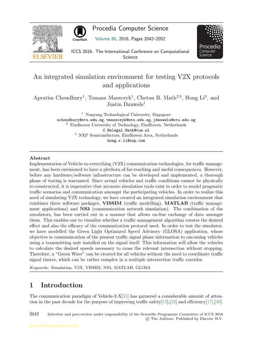 IEEE 802.11p标准的创建以及5.9GHz频率带宽的专用于支持ITS应用程序的通信,已经激发了许多国家探索大规模实施该技术的可能性,其中之一是新加坡。这导致了NTU-NXP智能移动性测试平台的诞生,它将为研究人员提供理想的测试V2X技术和应用程序的场所。该项目得到新加坡经济发展局的支持,由南洋理工大学和恩智浦半导体共同合作实施。该试验台项目的一部分是开发一种模拟器,该模拟器能够在试验台和无法超出其应用场景的应用场景之外的区域上对V2X的能力进行建模和测试。为了模拟V2X操作,不存在任何自支持的模拟工具。但是,可以集成许多不同的仿真软件,当它们一起运行时,可以允许它们分析实施V2X技术的效果。以下是集成的V2X模拟器的三个主要组件: