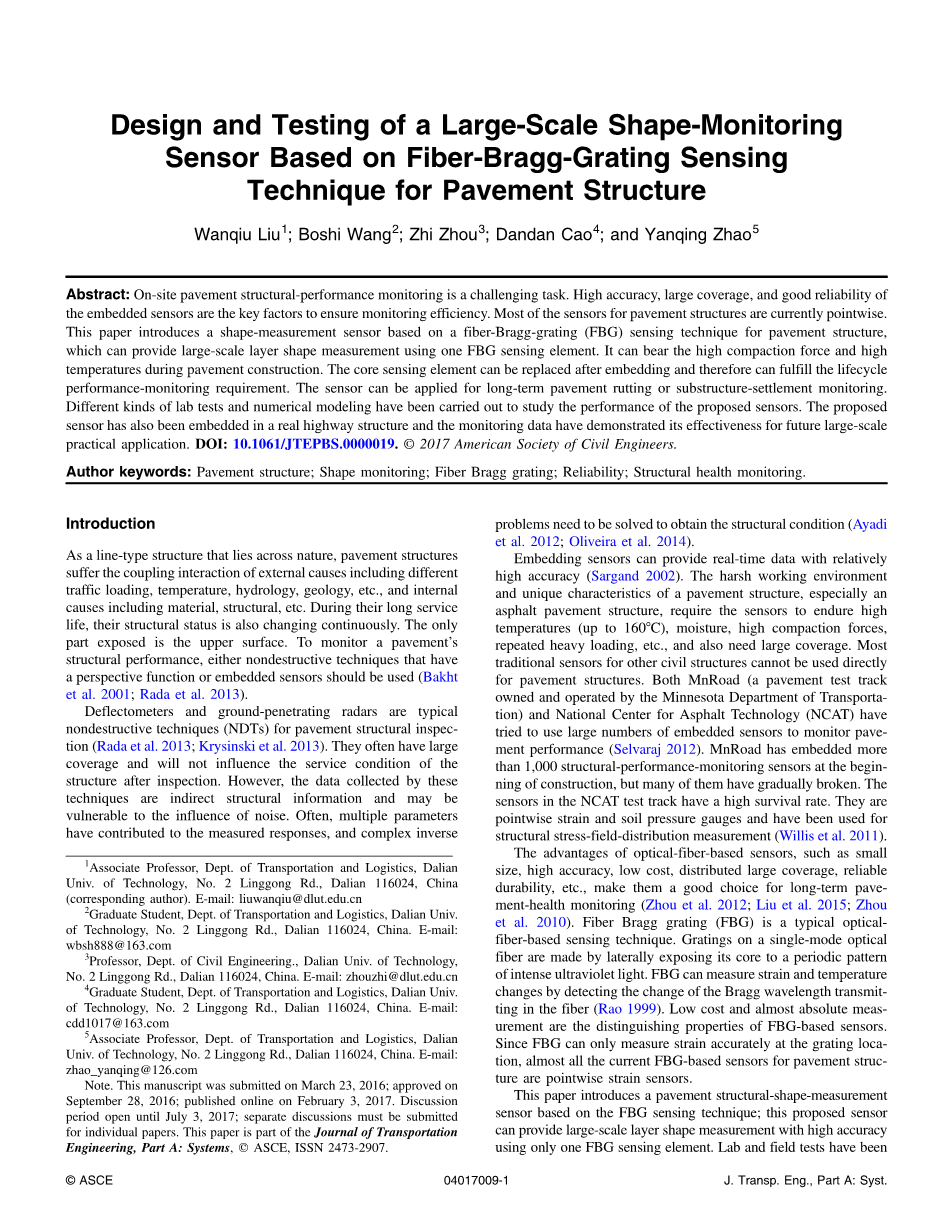 关键词:路面结构;形状监测;光纤布拉格光栅;可靠性;结构健康监测