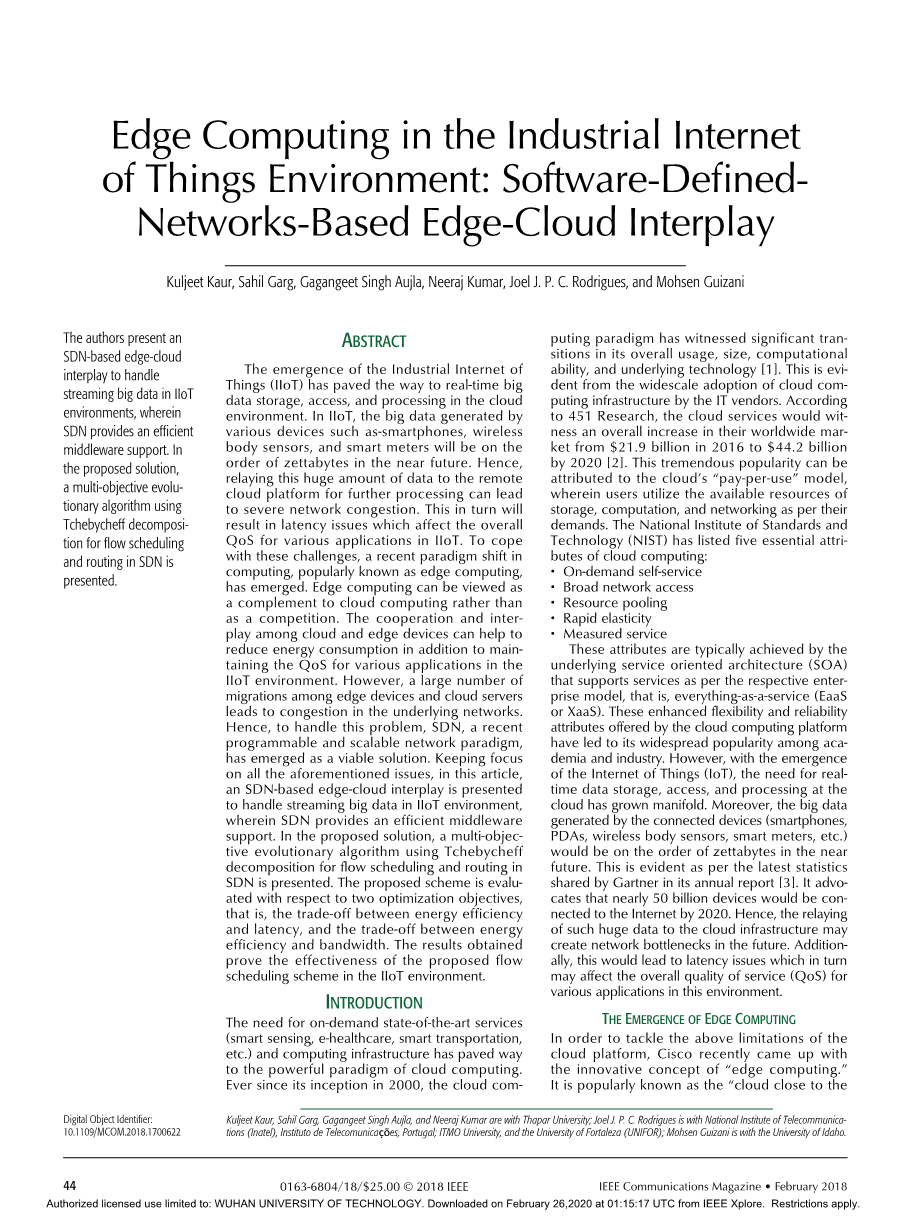 (批注)作者呈现了基于SDN边缘云的相互作用去处理工业物联网环境中的大数据流,其中SDN提供了高效率的中间件支持,在提出的方案中,提出了一种SDN中用于流调度和路由的使用切比雪夫分解的多对象进化算法。
