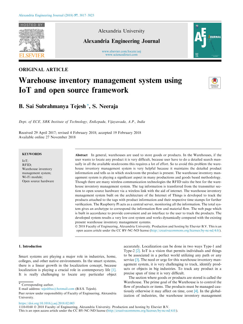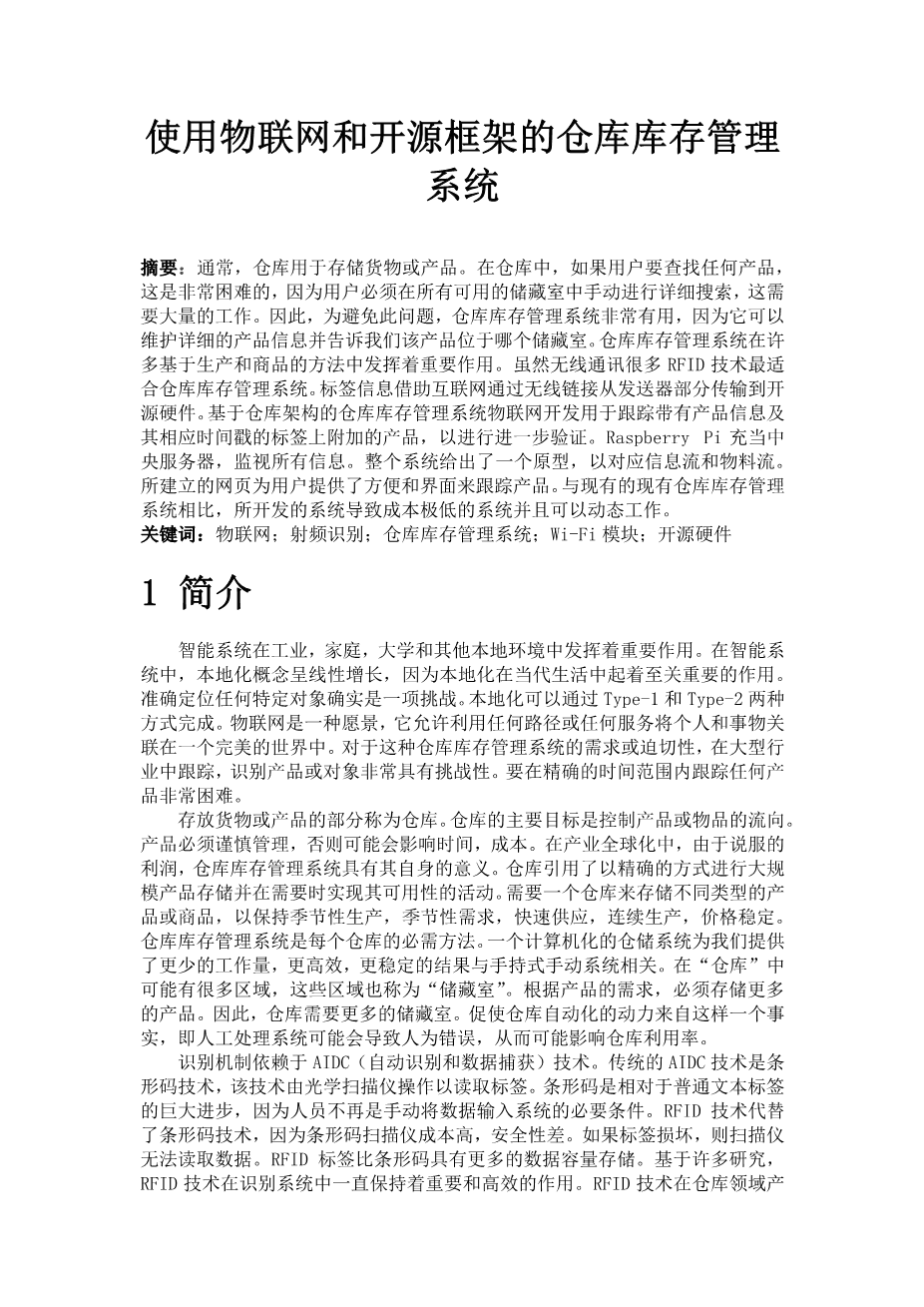 使用物联网和开源框架的仓库库存管理 系统外文翻译资料 2022-08-10 17:12:27 英语原文共 7 页,剩余内容已隐藏,支付完成后下载完整资料 英语译文共 10 页,剩余内容已隐藏,支付完成后下载完整资料 资料编号:[238087],资料为PDF文档或Word文档,PDF文档可免费转换为Word 原文和译文剩余内容已隐藏,您需要先支付 30元 才能查看原文和译文全部内容!立即支付 发小红书推广免费获取该资料资格。点击链接进入获取推广文案即可: Ai一键组稿 | 降AI率 | 降重复率 | 论文一键排版 PREVIOUS NEXT 您可能感兴趣的文章 看边界:边界感知面部对齐算外文翻译资料 看边界:边界感知面部对齐算外文翻译资料 一种支持分布式正态智能监控的多代理体系结构外文翻译资料 增强的无线局域网协作MAC外文翻译资料 近眼显示器的绝对辐射和光度测量外文翻译资料 红外遥控系统外文翻译资料 一幅单一图像中雨滴去除的专注生成对抗性网络外文翻译资料 深度残差学习在图像识别中的应用外文翻译资料 低成本,便携式室内环境质量监测装置的设计与开发外文翻译资料 使用基于查询蓝牙的RSSI概率分布进行室内定位外文翻译资料