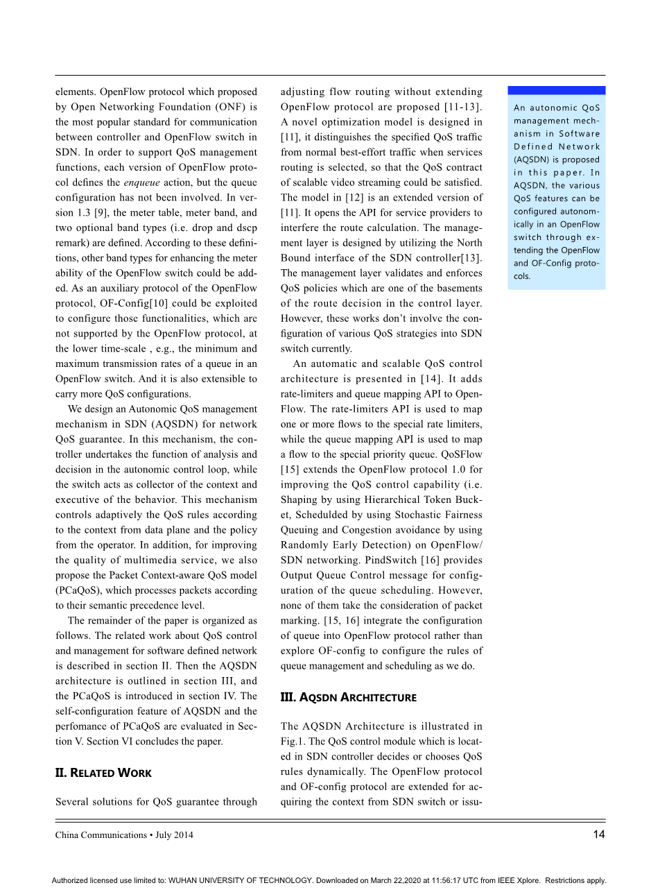 论文的其余部分安排如下。第二节介绍了软件定义网络的QoS控制和管理的相关工作。第三节概述了AQSDN的体系结构,第四节介绍了PCaQoS,第五节评价了AQSDN的自配置特性和PCaQoS的性能。