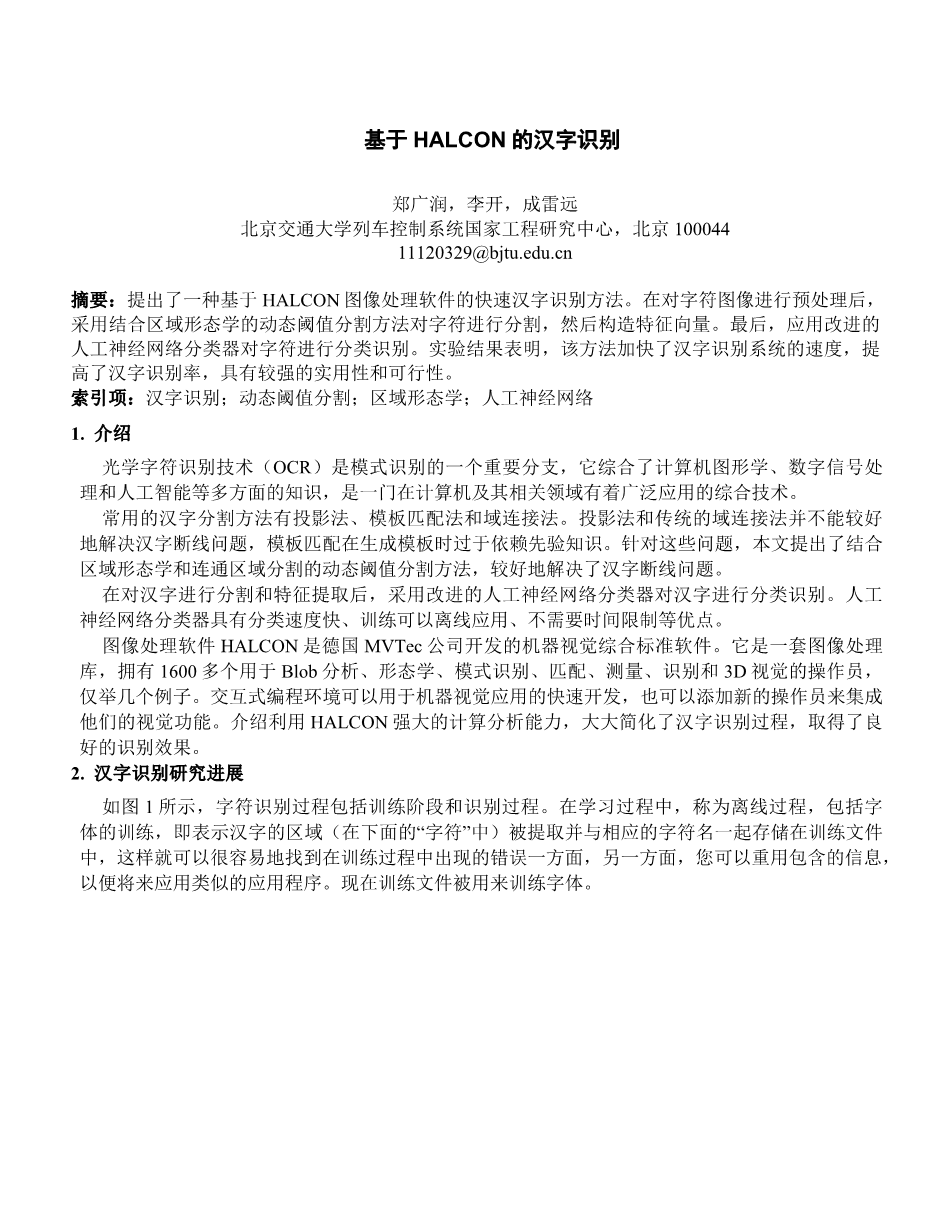 基于HALCON的汉字识别外文翻译资料
