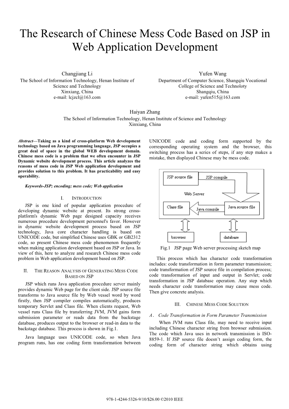 作为一种基于Java程序语言的跨平台网络应用技术,JSP在全球WEB开发领域占据了大量份额。中文乱码是一个我们在JSP动态网站开发编程中经常会遇到的一个问题。这篇文章分析了在JSP网络应用开发中乱码的原因,并且针对问题提供解决方法,具有实践性和简单操作性。