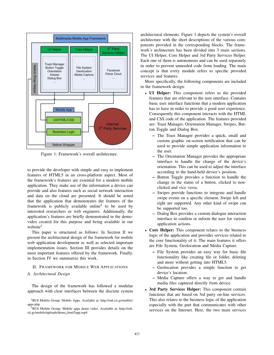 在第二节我们:本文结构如下呈现为移动的框架的建筑设计Web应用程序开发以及重要选择执行问题。第三节提供了详细信息该框架提供的最重要的特点。 最后,在第四节,我们总结了这项工作。
