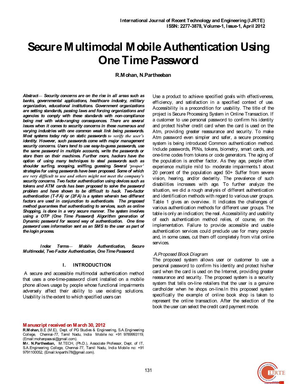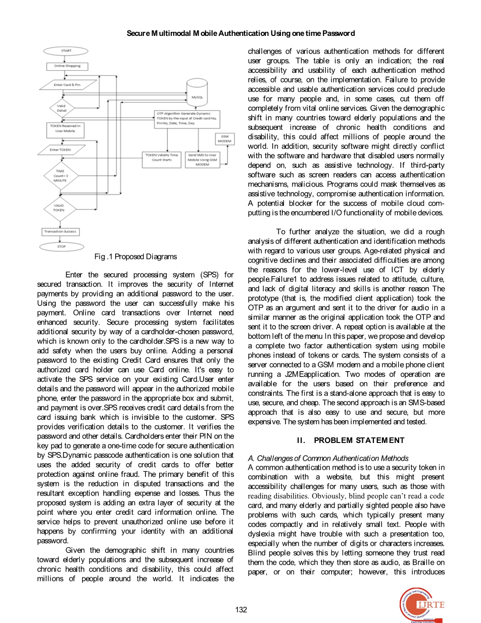 所有的领域如银行,政府,医疗机构,军事组织,教育机构对安全问题的关注越来越高。政府机构制定了标准,通过了法律,并强迫组织和机构遵守这些标准,然而效果却不是很好。在很多情况下,当谈到安全问题时,众多不同行业都有一个共同的薄弱环节——密码。现在大多数的系统仍然使用静态密码来验证用户身份。然而,静态密码在管理上存在着很大的安全隐患。用户倾向于使用容易记忆的密码,并且很多账户都共用一个密码,有的用户还会把密码写在纸上,或者存储在电脑中。因此,黑客们有很多种方法来窃取密码,如肩窥、监听、窃听、猜测等。已经有几种合适的密码使用策略被提出。但是有些策略非常难以使用,而另一些可能不适用于企业的安全问题。双因素认证使用了硬件设备比如令牌、ATM卡,其被证实解决了密码问题,并且非常难破解。双因素认证(简称T-FA或2FA)使用了两个不同的因子来验证。该方法保证服务器认证(如在线购物系统)在一种安全的方式下完成。双因素认证使用OTP(一次性口令)算法生成动态密码作为第二种认证方式。一次性口令将必要的信息通过SMS发送给用户,用以登录。