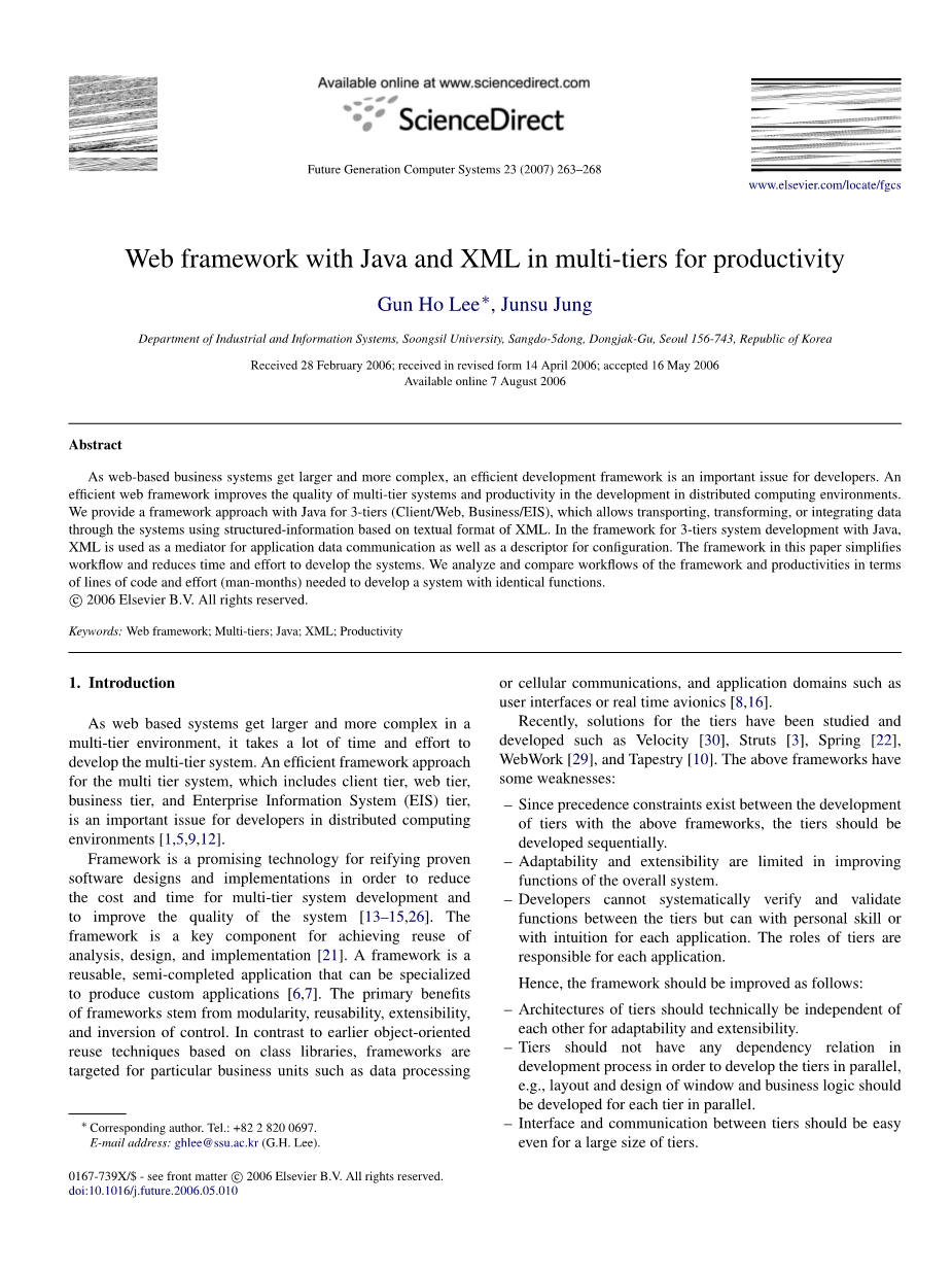 这个基于文本格式的结构化信息系统。在这个拥有java的三层开发系统的框架中,XML用于应用数据通信以及配置描述符的调停者。在本文中运用框架尽量简化工作流程,并减少时间和精力来开发系统。我们考虑代码行数和可行性的前提下,分析和比较在生产中运用框架开发系统的可行性。