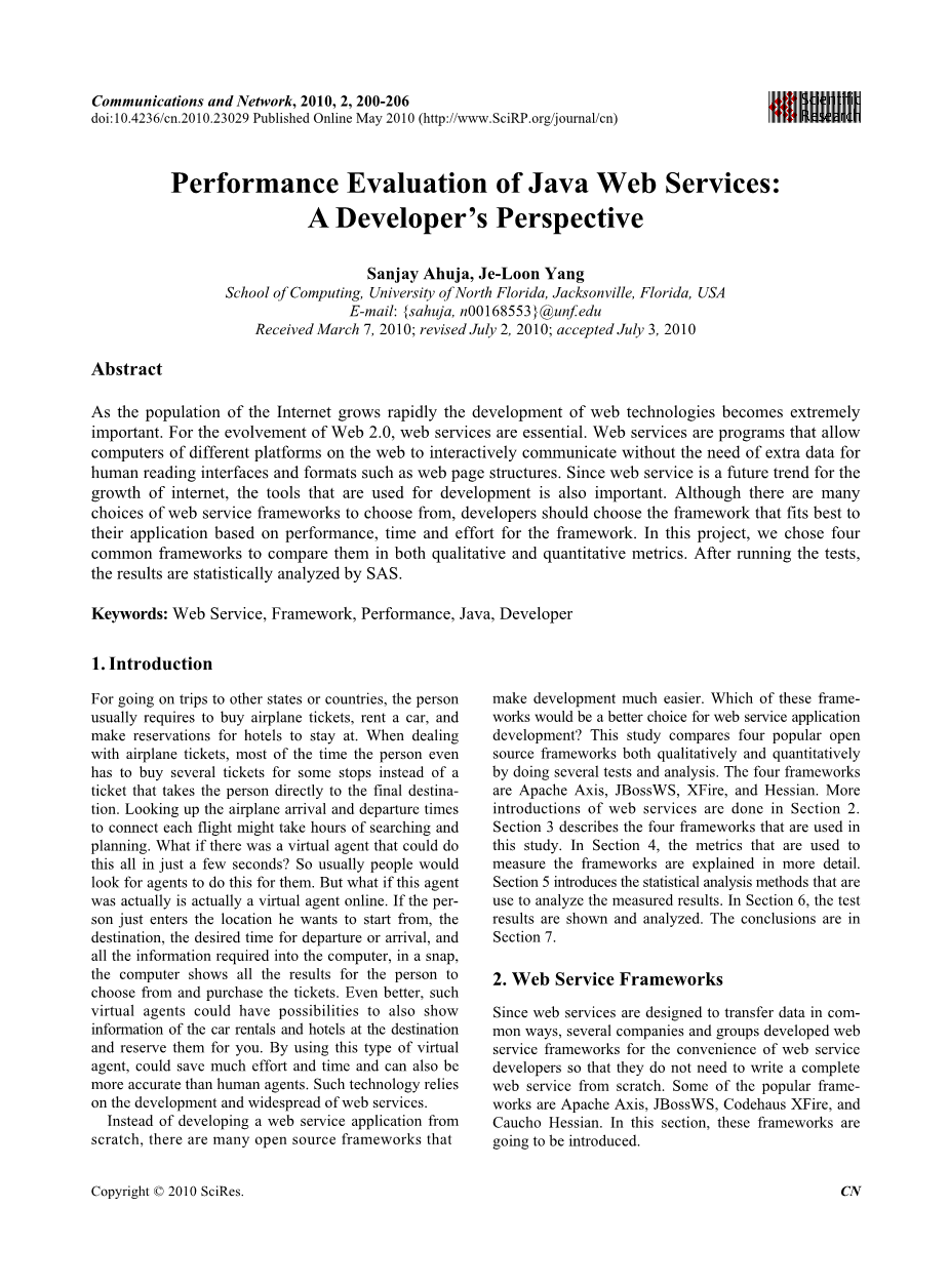 对于web服务的开发还有什么比这些框架更好的选择吗?在这次的研究通过做一些测试和分析来定性和定量来比较四种比较受欢迎的开源框架。这四种框架分别是 Apache Axis、JBossWS,、XFire、 and Hessian。在第二节里面有更多的关于web服务的介绍。第三节